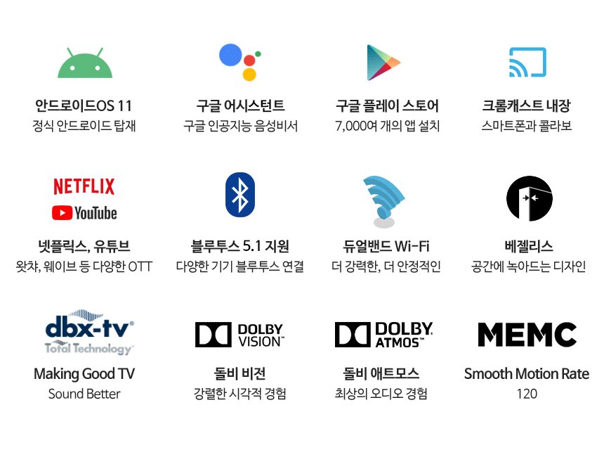 TV는 안드로이드 OS 11 이 탑재되어 있고, 구글 어시스턴드도 지원한다.